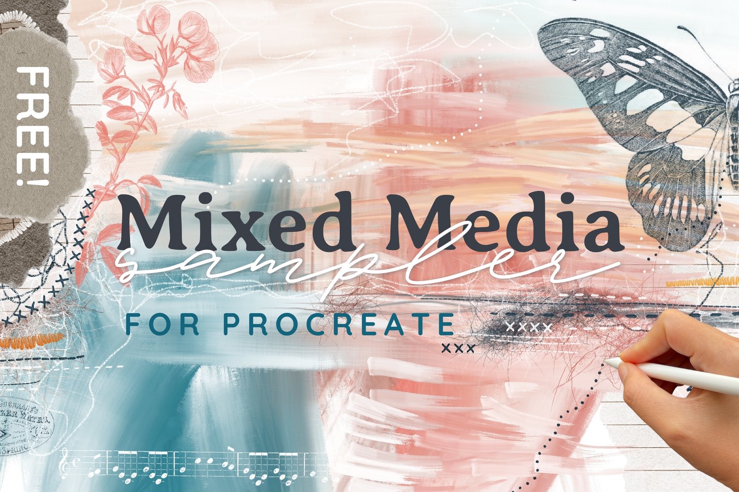 A curated selection of 14 premium Procreate brushes and 9 paper images, for layered, painterly, collage-style iPad art.